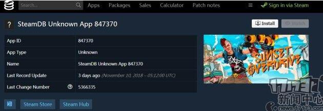 小编仔细看了看Steam数据库中的信息,上面清晰写到这款作品3前天才进行过更新,虽然应用程序的名字显示未知,只有一个内部瞪鯠,但是配套的图案毫无疑问就是《日落过载》的宣传图片。