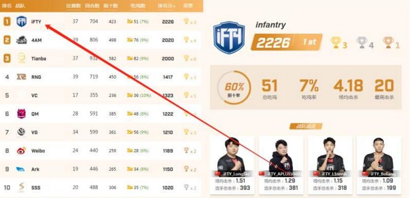 在近期的三大杯赛,PCL夏季赛以及PCM大师赛等5项比赛中,IFTY共取得了2冠1亚的好成绩,在现阶段国内职业圈中就只有4AM(1冠1亚)能追上IFTY的步伐,其他战队和他们已经拉开了差距,IFTY确实是国内现阶段表现最好的队伍,他们登顶排行榜实至名归。