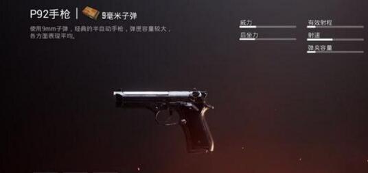 P92是一把半自动手枪,算是手枪中最差的一把了,射速差,伤害低,近战的时候特别吃亏,基本很难杀死人,所以基本没有人会去使用这把武器,除非是落地后只有这把枪,不然一般玩家是不会去考虑的。